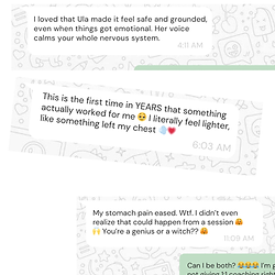 🌸 The Gentle Passage Rei means Universal Life. Ki means Energy. Together, Reiki is the universal life force energy — a subtle, intelligent current that is always working to bring you back to wholeness. When energy flows freely, we feel grounded, safe, and clear. But for many of us, modern life is a constant stream of stress. And when the nervous system is stuck in survival mode, healing simply isn’t possible. That’s where Reiki comes in. It helps your system shift gently — from survival into safety, from tension into trust. Sometimes slowly. Sometimes instantly. Safe for children and seniors. "There’s a stream of light and love that flows through me. It calms, softens, and invites your body to remember its natural rhythm of balance, renewal, and peace. Life knows how to heal and knows how to bloom.” — Ula Rybnik ✨ WHAT REIKI CAN SUPPORT: 🌿 Physical - Regulate the nervous system and gently step out of “fight or flight” - Ease aches, pains, and hormonal imbalances - Relieve insomnia and invite restorative sleep - Support the body through chronic illness and deep cellular healing - Detoxify and move stagnant energy that manifests as illness - Activate DNA healing and awaken the body’s natural intelligence 💖 Emotional & Mental - Release stored trauma from body and psyche - Find relief from anxiety, depression, fears, and uncertainty - Navigate change, loss, grief, or anger with more grace - Heal the inner child and subconscious patterns - Cultivate self-acceptance and a new perspective - Boost your mood, restore clarity, and create vision for the future 🌌 Spiritual - Awaken the third eye and clarify your soul’s purpose - Connect with spirit guides, ancestors, and unseen support - Cut cords and retrieve scattered energy - Heal ancestral lines and karmic lessons - Harmonize masculine and feminine energies within - Become grounded, embodied, and attuned to your 🌍 WHAT TO EXPECT — online session You don’t have to leave your home. We meet on Zoom and set an intention. Then all you "have to do" is lie down, close your eyes, rest. It's important to be alone in the room, and have time and space for your process. You will receive an email with info how to best prepare before the session. Sometimes there is time at the end of the session to share insights, feelings, shifts. More often you will just want to bathe in this energy unbothered, and sharing will be done by email. Remote Reiki is just as powerful as in person. Energy is not bound by time or space.